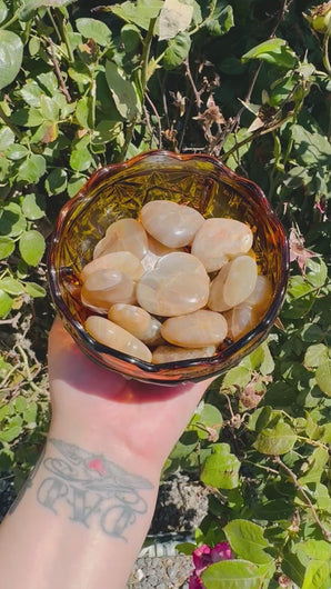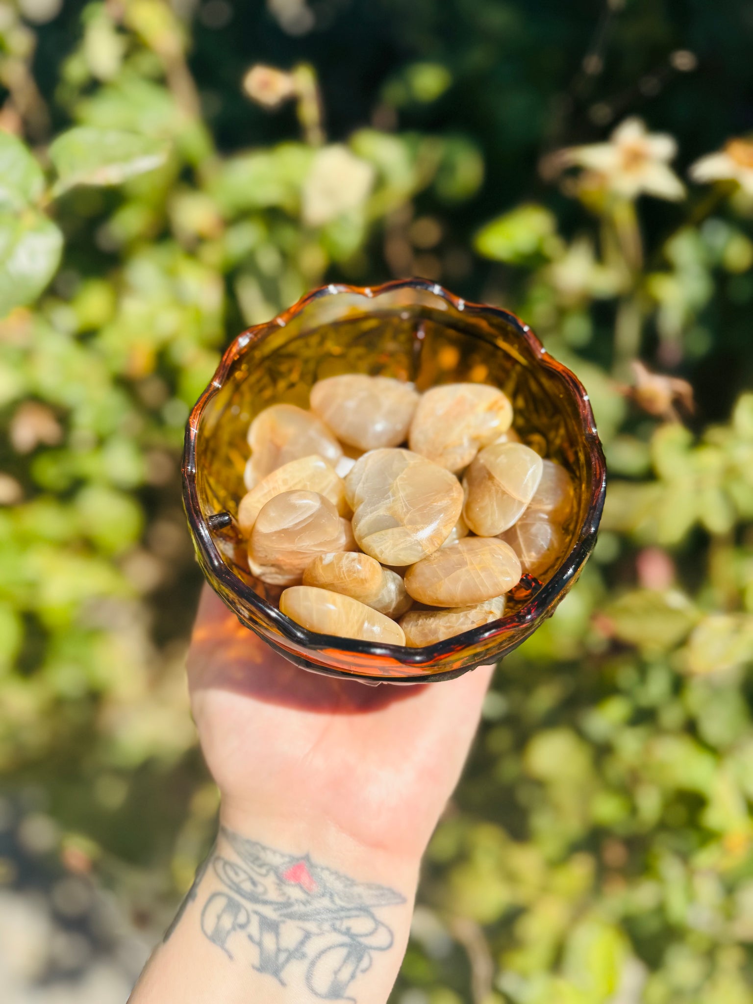 Chosen at random, guaranteed to have some flash! 3 piece peach moonstone heart carvings.